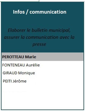 sont également élus - Romain SIMONNEAU - Marie PEROTTEAU - Sébastien GOIGNARD - Liliane COURTIN - Jean-Christophe RODON - Samuel MINEAU - Monique GIRAUD - Aurélie FONTENEAU - Vanessa BOURSAUD - Natacha GUERINEAU